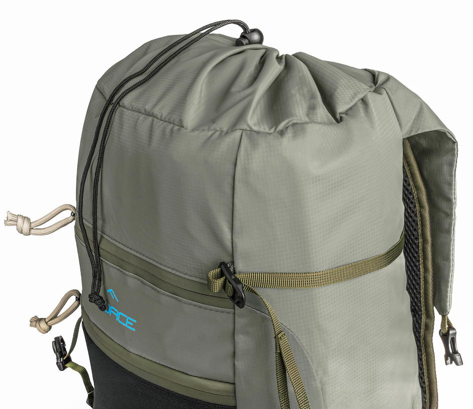 hlavní kapsa uzavíratelná stahovací šňůrkou a klopou na přezky