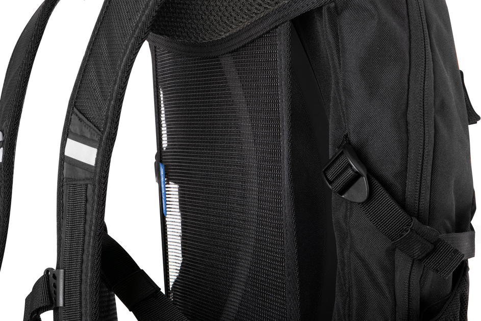 Praktický batoh o objemu 22 litrů je ideální volbou nejen pro cyklistiku, ale i pro turistiku, výlety a aktivní dny v přírodě. Díky promyšlenému zádovému systému s kovovou výztuhou batoh nesedí přímo na zádech, což zajišťuje výborné odvětrání a vyšší komfort i při delším nošení.