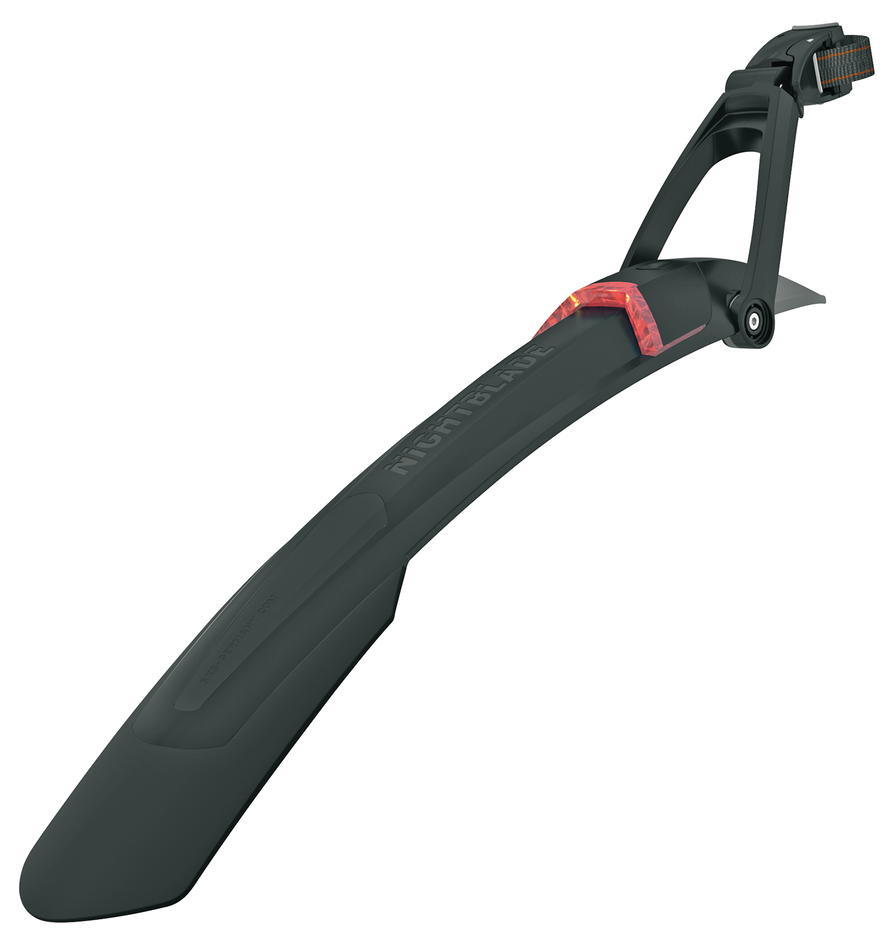 Blatník Nightblade je ideální volbou pro horská kola. Kromě ochrany proti stříkající vodě zvyšuje bezpečnost díky integrovanému zadnímu světlu s dobíjecí baterií, kterou lze snadno vyjmout a dobít přes USB. Díky jednoduchému upínacímu systému se hodí pro většinu sedlovek a jeho nastavitelné klouby zajišťují perfektní přizpůsobení různým typům kol.