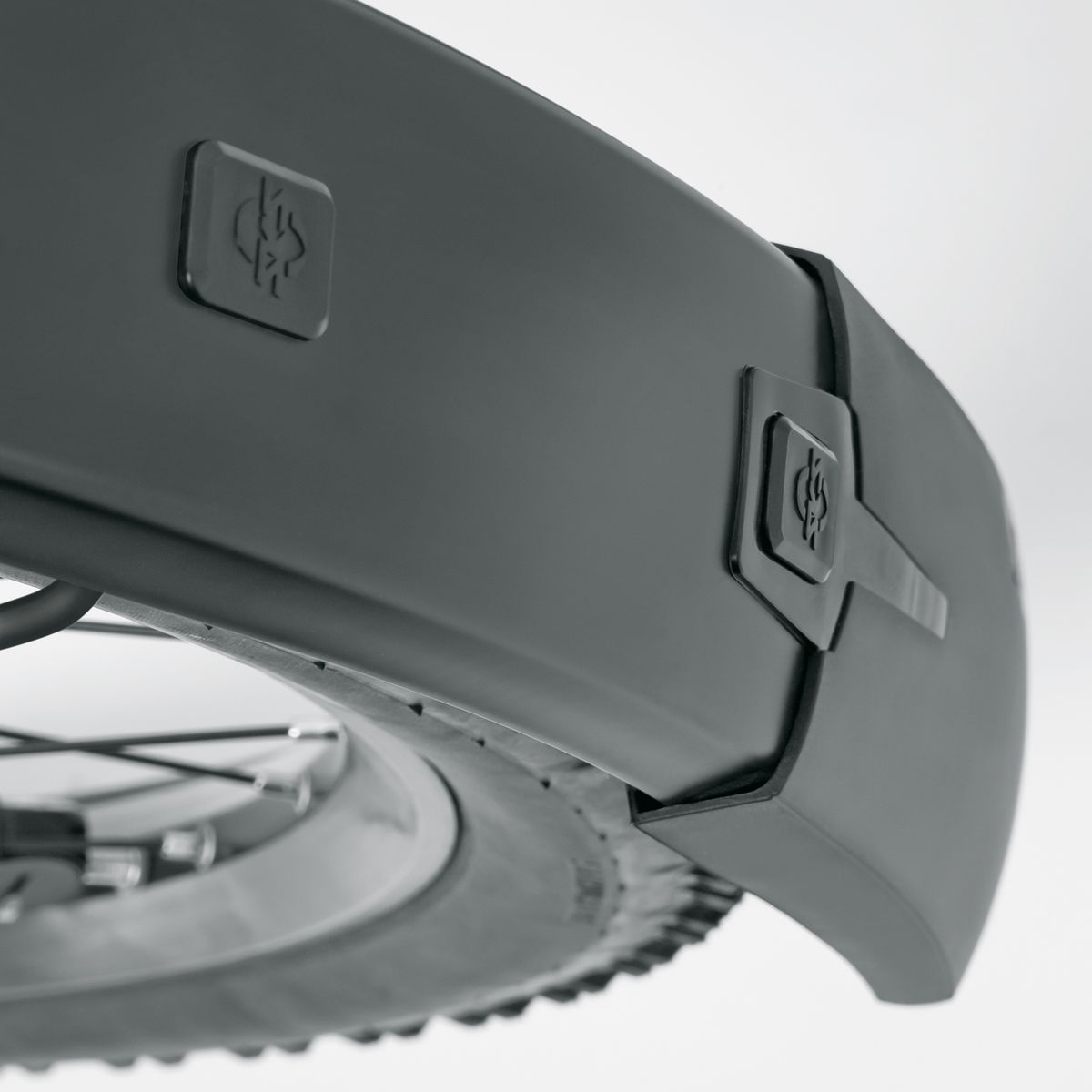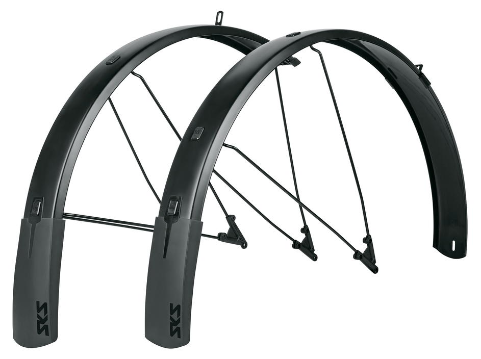 SKS Bluemels Style je sada blatníků s ohebným spoilerem, který nabízí vynikající všestrannou ochranu proti stříkající vodě. Díky flexibilní sendvičové konstrukci, ve které jsou ultrajemné hliníkové proužky zasazeny do plastového povlaku, je blatník extrémně robustní, tuhý a odolný proti korozi. Model má nový V-adaptér s bezpečnostním systémem ESC, které odpojí dvojité U-vzpěry, pokud by se mezi paprsky zachytily větve. Díky tomu by se kolo nemělo zaseknout. S černým matným povrchem a černými upevňovacími prvky působí blatníky jednotným designem a vynikají i po vzhledové stránce.