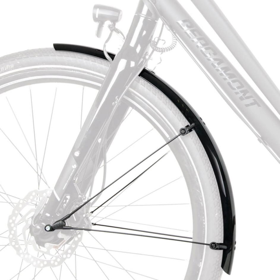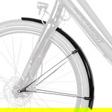 Díky pružné sendvičové konstrukci, v níž jsou ultrajemné hliníkové proužky zapuštěny do plastové vrstvy, jsou blatníky mimořádně robustní, tuhé a odolné proti korozi. Bezpečnostní systém ASR zajišťuje odpojení blatníků v případě, že se mezi paprsky zachytí větve. Pevné můstky a V-vzpěry zajišťují rychlou montáž s mnoha možnostmi nastavení. Součástí je sada vzpěr, posuvný můstek a montážní materiál.