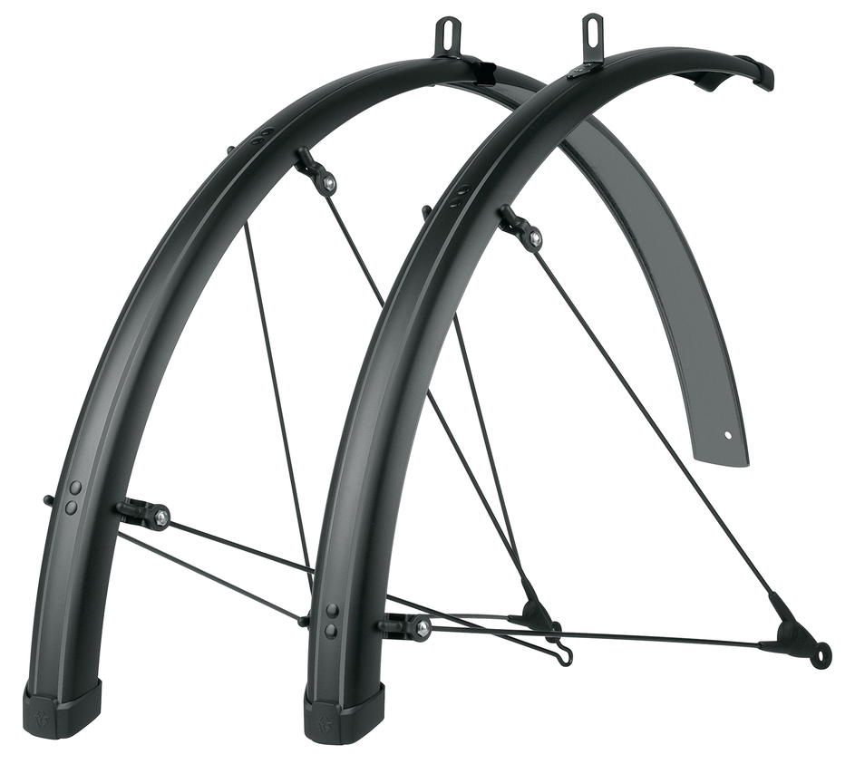 Nyní ještě širší, delší a stylovější! Černě matná sada blatníků BLUEMELS STRIPES od SKS s šedými pruhy dodá kolu skvělý vzhled. Díky černým patkám a chrániči okrajů s logem SKS je čistý vzhled prostě dokonalý. Rozšířené profily zajišťují optimální ochranu proti stříkající vodě a nečistotám.
