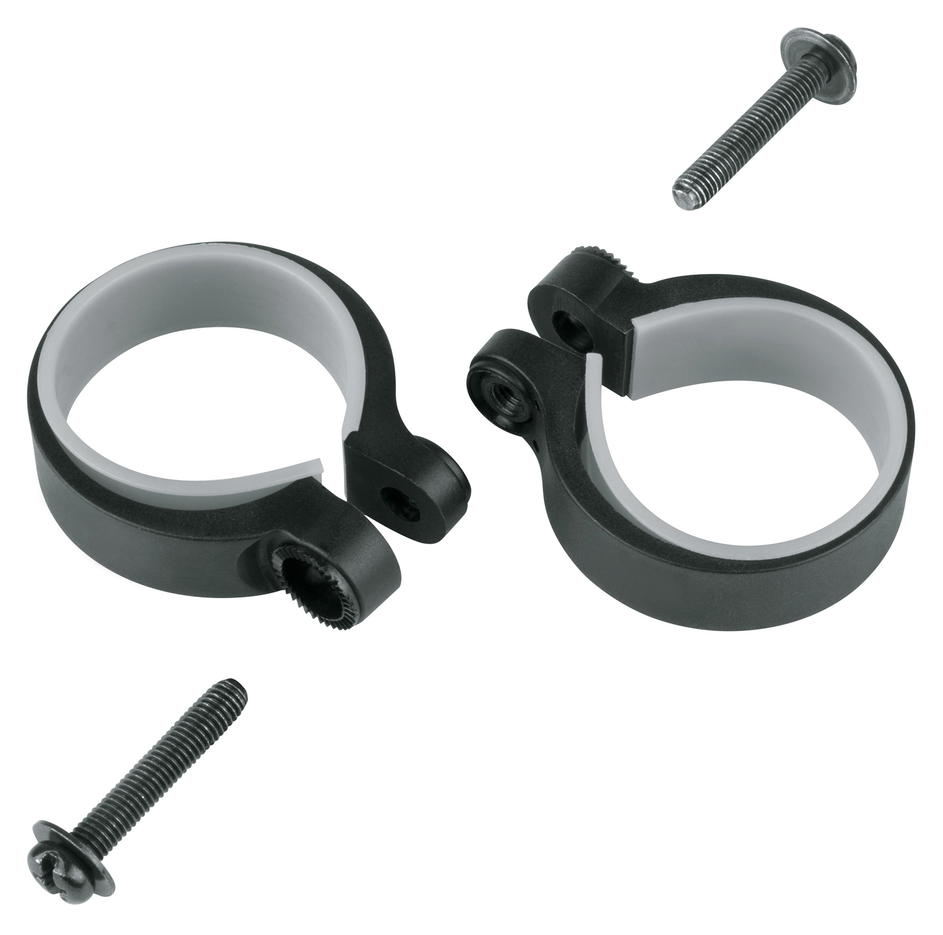 Montážní objímky pro blatníky slouží pro upevnění předního blatníku na vidlici v případě, kdy vidlice nemá úchyty pro blatníky nebo jsou špatně dostupné. K dostání ve třech rozměrech podle průměru nohou vidlice.