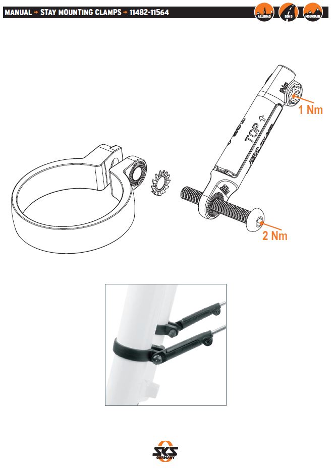 Montážní objímky pro blatníky slouží pro upevnění předního blatníku na vidlici v případě, kdy vidlice nemá úchyty pro blatníky nebo jsou špatně dostupné.