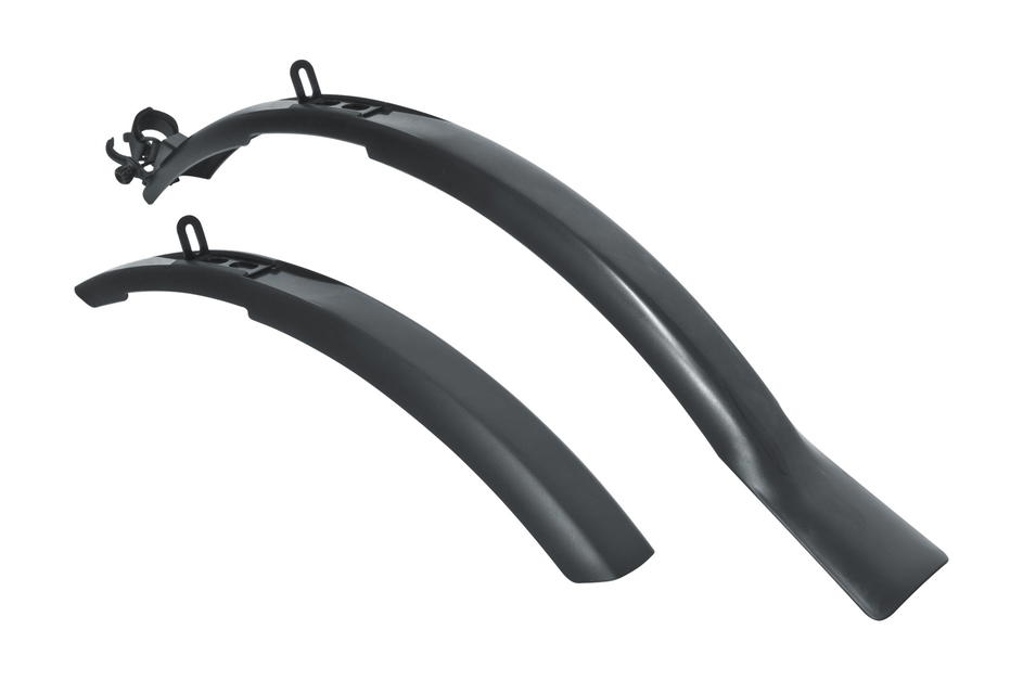 Set blatníků Přední a zadní blatník pro MTB a Cross Dvě možnosti uchycení na sedlovou trubku: 1. Nastavitelným držákem 2. Rychloupínací systém s páskem Vhodné pro všechny typy rámů