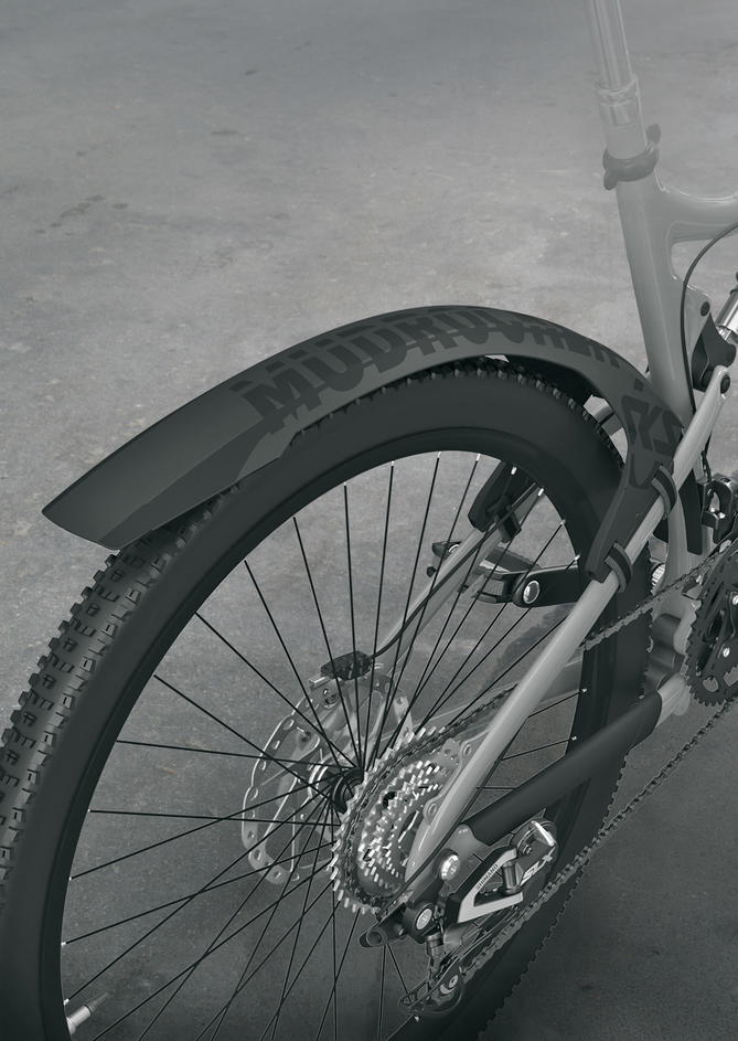 Blatník je navržen pro snadné upevnění na rám pomocí přiložených pogumovaných pásků se suchým zipem nebo eska pásky. Otočná podložka, která je součástí balení, umožňuje správné výškové nastavení a zajišťuje optimální polohu blatníku. Pogumované prvky v oblasti upínání chrání lak rámu před poškozením. Blatník je kompatibilní se všemi rozměry plášťů, přičemž maximální šířka pláště činí 75 mm (2,8").