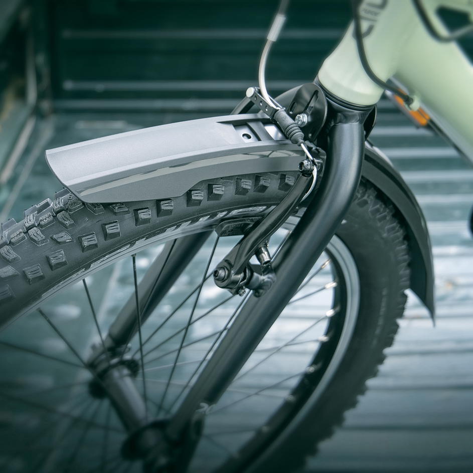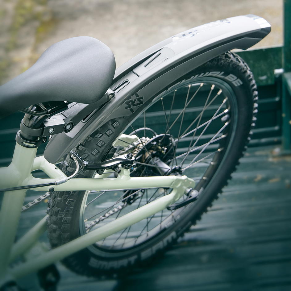 Blatníky ROWDY se montují na zadní kolo pomocí nově vyvinutého systému uchycení s nastavitelným úhlem, který lze uvolnit pouze jedním šroubem. A protože děti rychle rostou: Systém vícenásobného nastavení roste s nimi a umožňuje přizpůsobení různým velikostem rámu. Aby byla zajištěna bezpečnost dětí v lese nebo na cestě do školy, lze do blatníku integrovat volitelné zadní USB světlo.