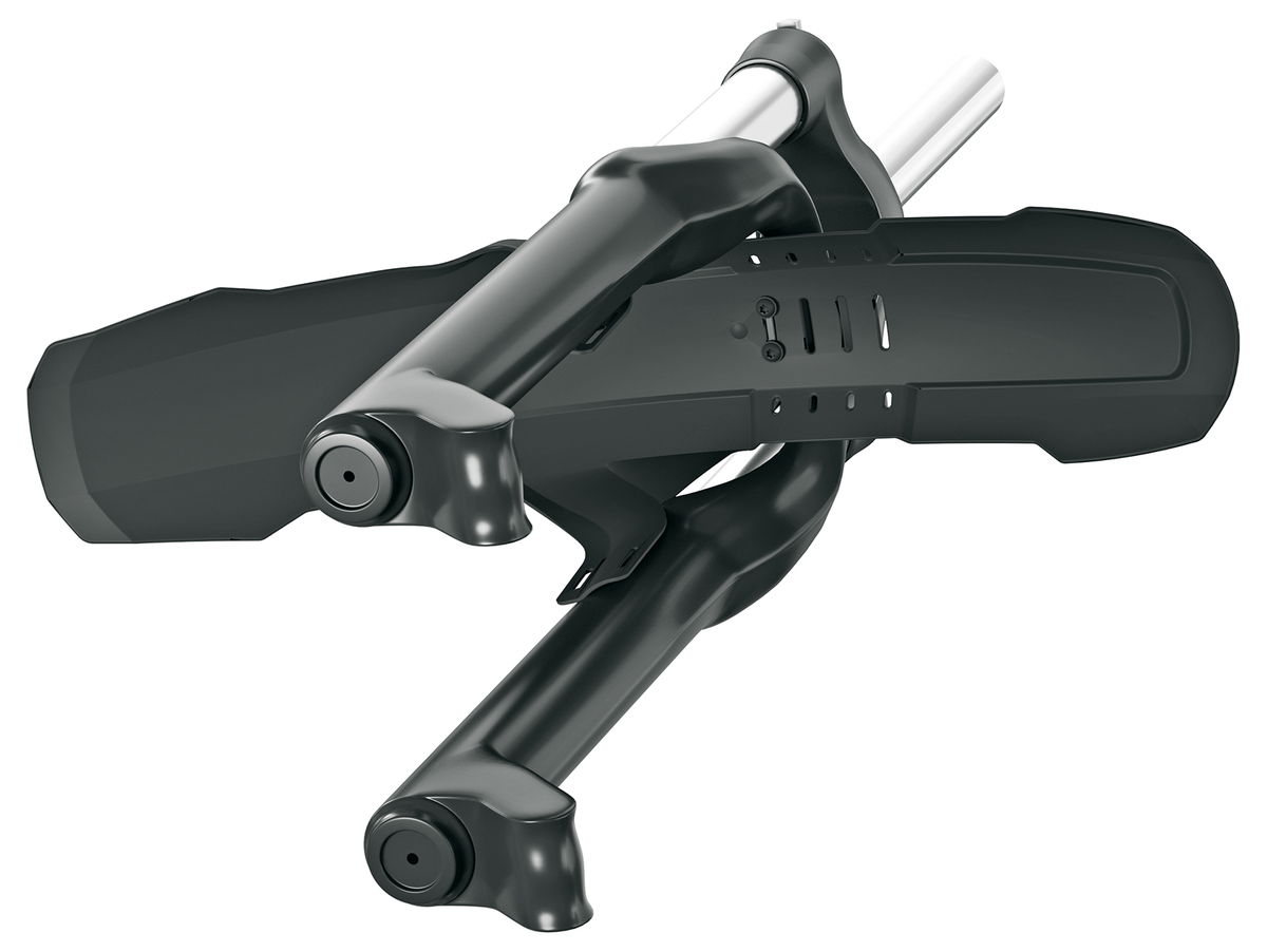 Uchycuje se na můstek vidlice, zde se uchytí dodávaným adaptérem. Blatník může být připevně k můstku také páskami se suchým zipem či plastovými stahovacími pásky. Po stranách se připevní dodávanými suchými zipy k nohám vidlice. Blatník zároveň chrání nohy vidlice z vnitřní strany. Blatník se dá…