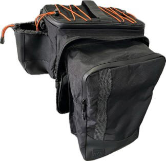Voděodolná brašna INFINITY URBAN TRUNKBAG XL je skutečným prostorným zázrakem. Díky dvěma výklopným bočním kapsám na zip lze objem snadno rozšířit dle potřeby. Brašna na kolo perfektně padne na nosič SKS INFINITY UNIVERSAL, ale lze ji také namontovat na všechny běžné cyklo nosiče. Je kompatibilní s adaptérovými systémy MIK, AVS, MonkeyLoad, Racktime, XLC CarryMore / i-Rack a KLICKfix (Adaptéry a šrouby nejsou součástí balení). Adaptéry lze připevnit na spodní stranu brašen pomocí šroubů, takže lze použít stávající desky nosiče zavazadel. Na druhou stranu ji lze také namontovat pomocí popruhů na suchý zip Hypalon Velcro. Popruhy na bočních kapsách zajišťují bezpečné uchycení na nosiči. Další popruh lze volitelně připevnit na sedlovku.