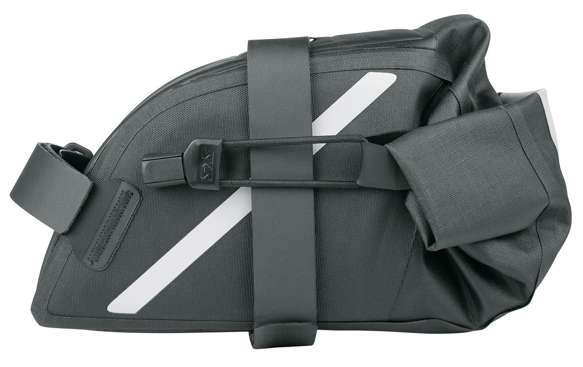 Podsedlová brašna SKS se dodává se zkracovatelným suchým zipem, který zajišťujíebezpečnou montáž pod sedlo kola. Dvě vnitřní kapsy z robustní síťoviny udrží klíče nebo peníze v bezpečí. Reflexní pruhy podél kapsy a reflexní držáky zadních světel poskytují zvýšenou bezpečnost, zejména při jízdě za soumraku.