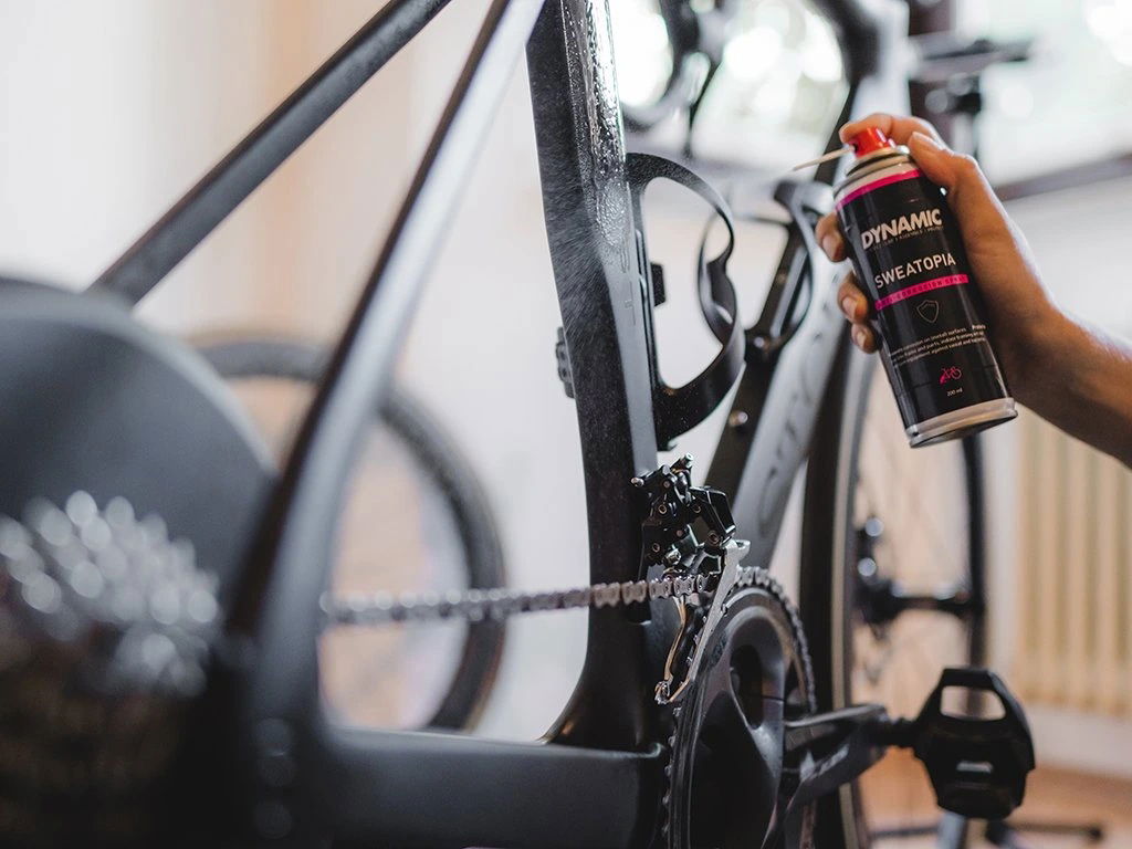 Speciálně vyvinutý pro ochranu rámu, komponentů a dalších částí kola před agresivním potem – DYNAMIC Sweatopia vytváří ochranný film, který zabraňuje korozi a zanechává povrch čistý a konzervovaný. Ideální pro použití na indoor trenažérech, silničních kolech nebo během horkých letních dnů. Neobsahuje silikony ani teflon, je biologicky odbouratelný a šetrný k životnímu prostředí.