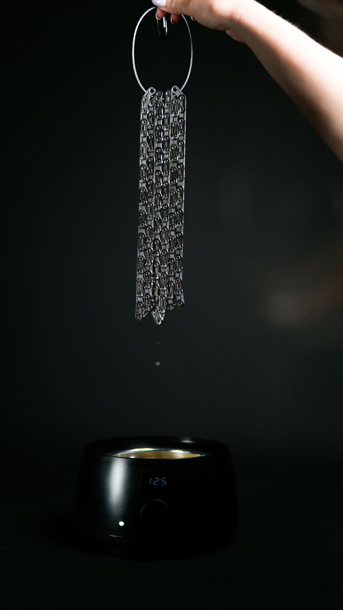 - Ponoř řetěz do tekutého vosku minimálně na 15 minut.