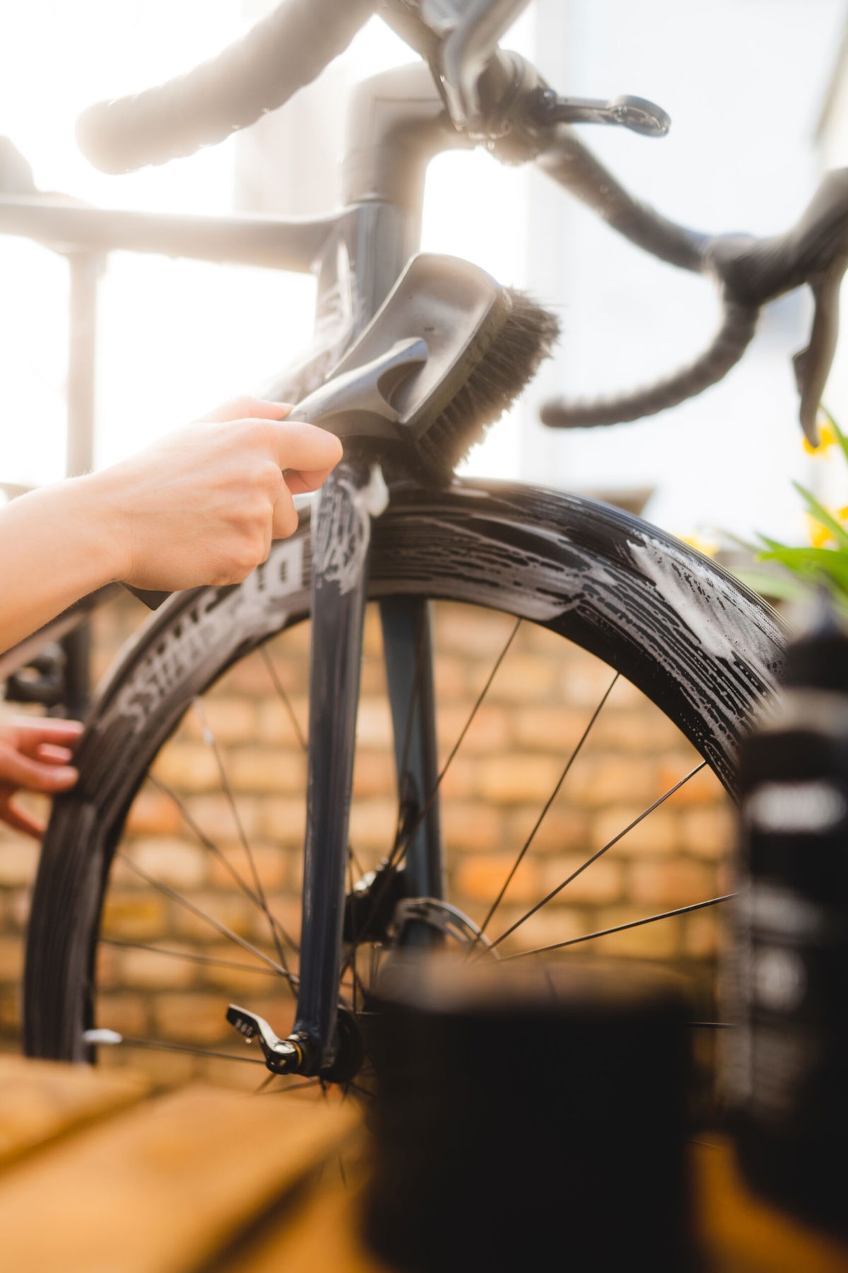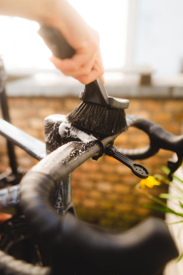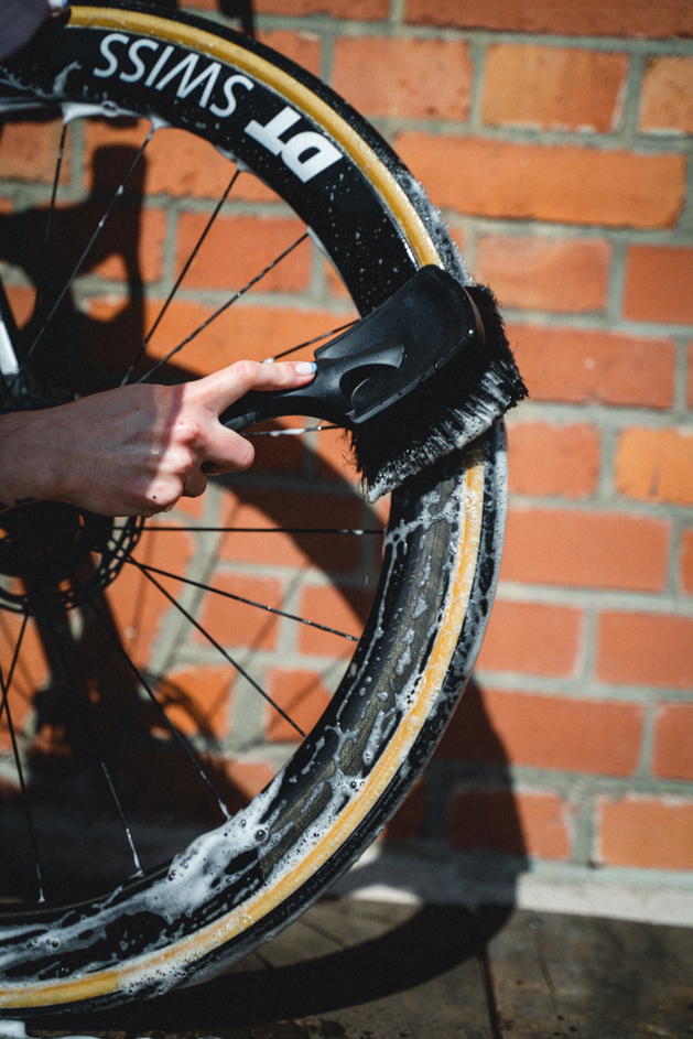 Kartáč na kolo s měkkými štětinami je navržen speciálně pro bezpečné použití na všech typech kol. Díky svému zvětšenému kartáčovému tělu umožňuje rychlé a efektivní čištění, zatímco pogumované nárazové zóny chrání rám před poškozením.