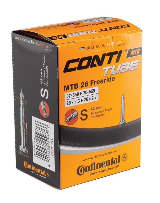 Cyklo duše Continental Freeride pro Enduro / FR a DH kola, u kterých se vyžaduje maximální odolnost. rozměr: 26x2,3-2,7" (57-70/559) ventilek:autoventilek 40mm (AV) / galuskový 42mm (FV)