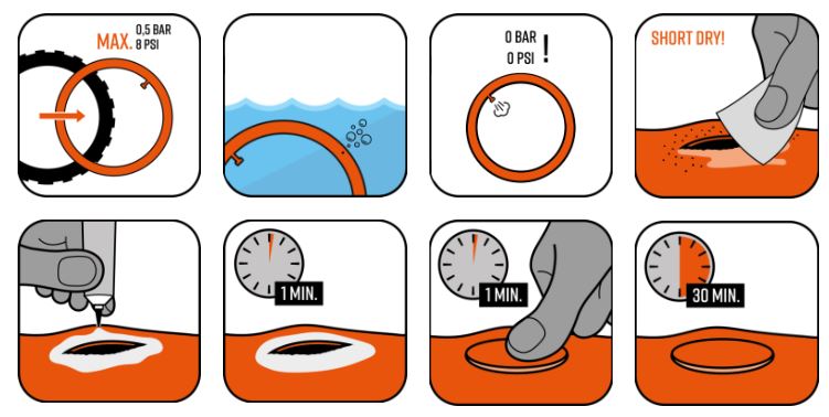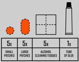 Sada Tubo-Patch-Kit pro opravu duší Tubolito. Zvýšená tepelná odolnost zajišťuje spolehlivé utěsnění i při vyšších teplotách. Sada obsahuje: 5 malých záplat 5 velkých záplat Lepidlo Odmašťovací hadříky