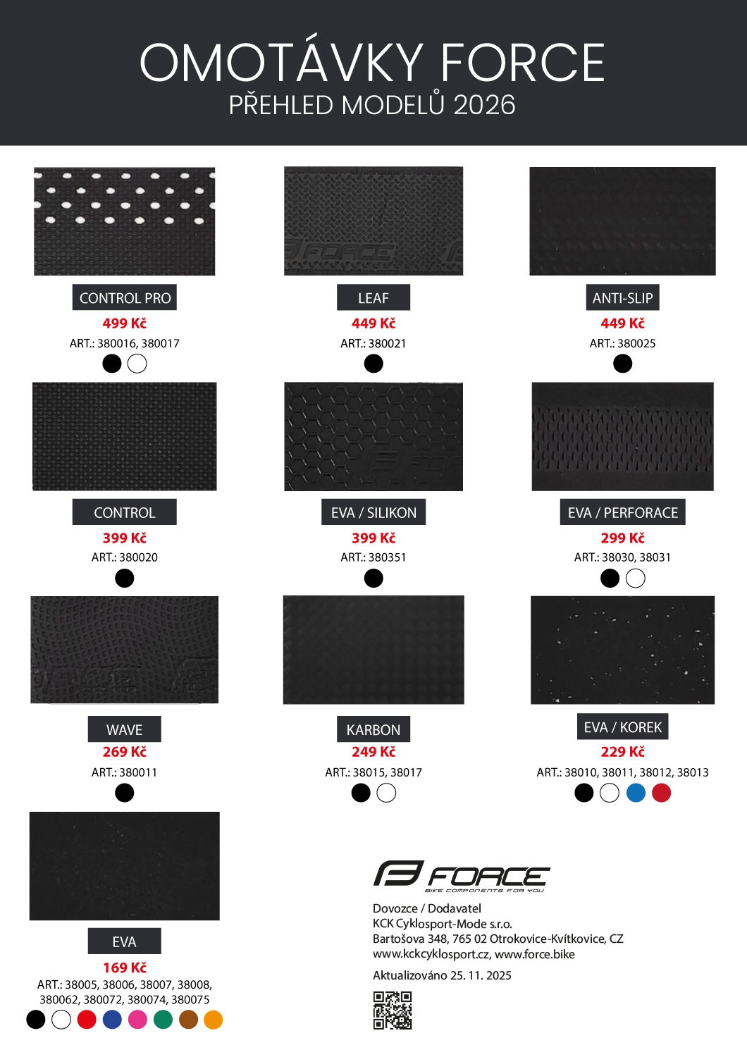 vzorník (1x A4) s ceníkem (1x A4) aktuálních modelů omotávek pro rok 2026 pro lepší orientaci v sortimentu omotávek verze pro tuzemské zákazníky