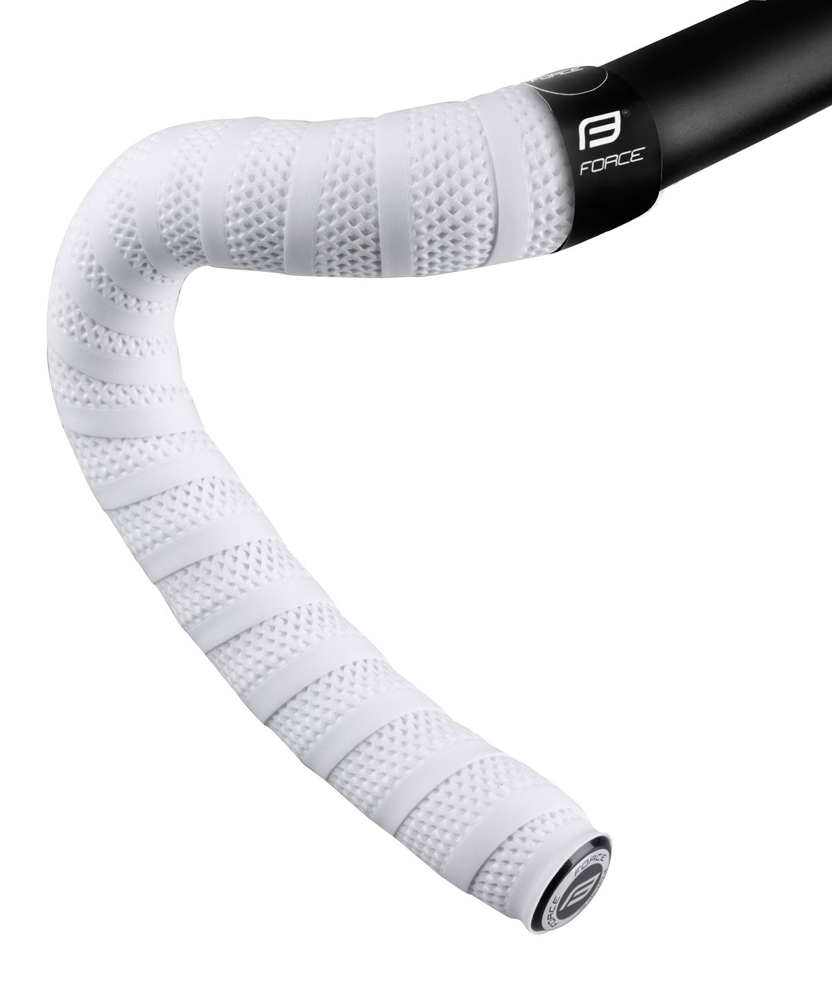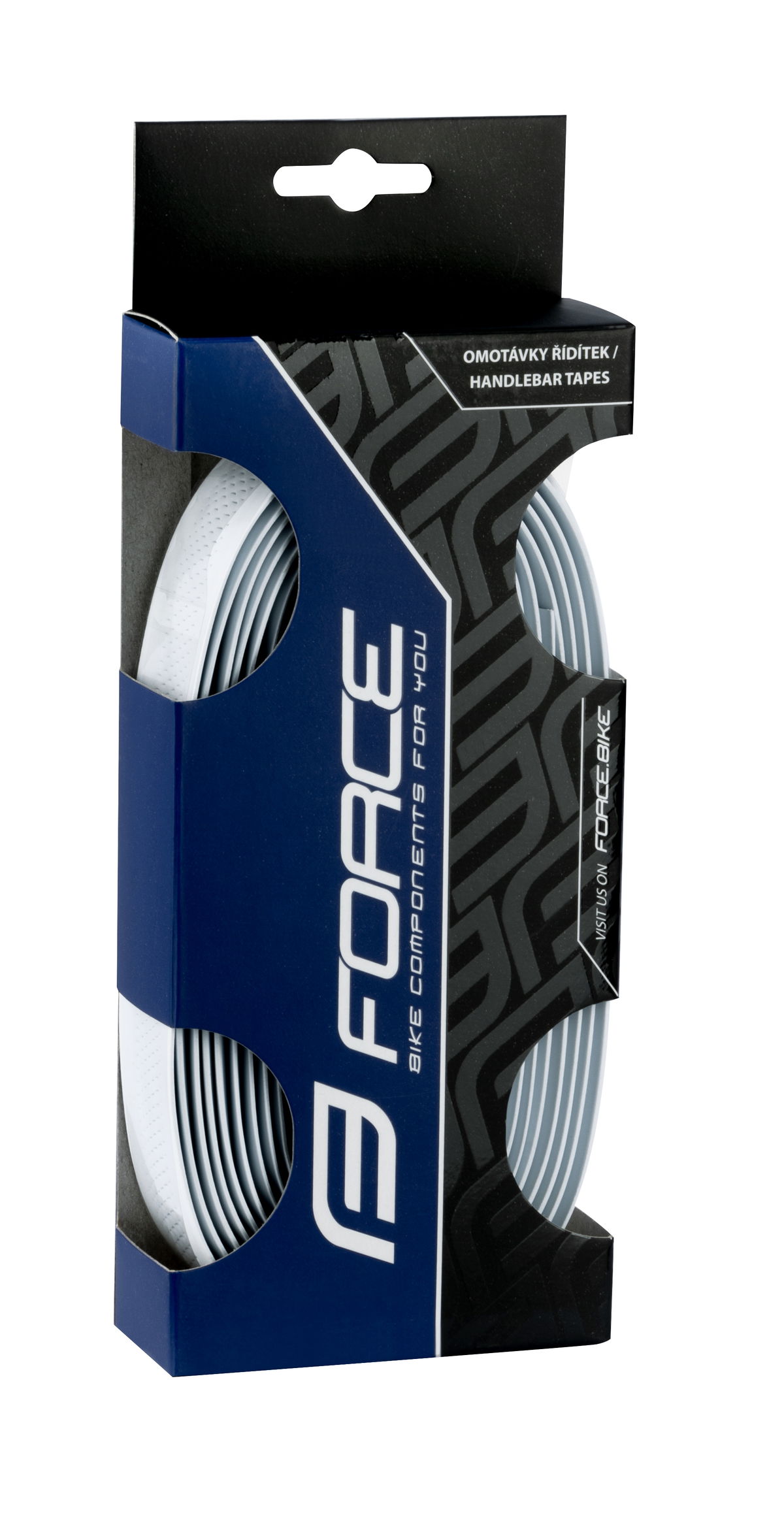 samolepicí s pohodlným úchopem včetně zakončovací pásky a zátek FORCE do řidítek materiál: EVA s perforovaným střed. pásem délka: 1950 mm tloušťka: 2 mm hmotnost 1 páru včetně zátek: 55 g baleno v krabičce FORCE