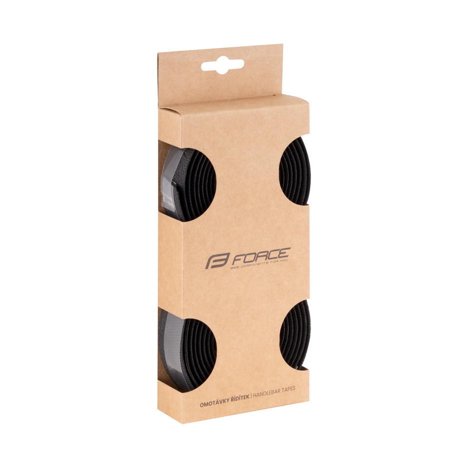 samolepící se vytláčeným logem FORCE včetně zakončovací pásky a zátek FORCE do řidítek materiál: EVA 50%, PU 50% rozměr: 2x role (délka 2100 mm, šířka 30 mm, tloušťka 2,5 mm) hmotnost 1 páru včetně zátek: 70 g baleno v krabičce FORCE