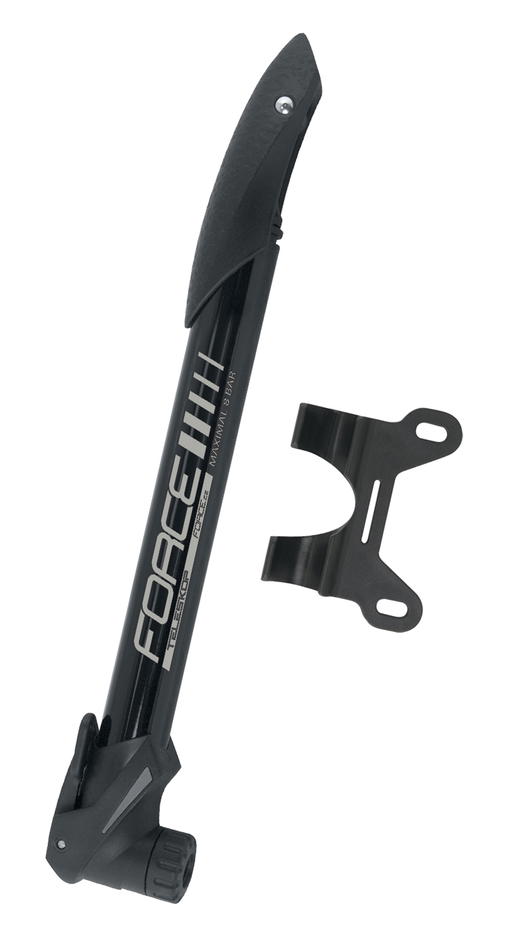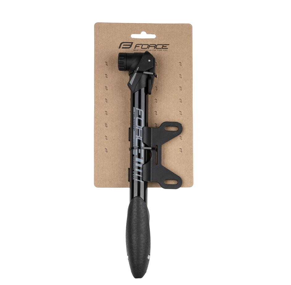DUOPÍST na všechny druhy ventilků (AV - moto, FV - galuskový, DV - klasický) včetně držáku pod košík 120 PSI/ 8 bar délka: 27 cm materiál: Al hliníkové tělo i píst/ plastová rukojeť hmotnost: 195,5 g baleno na kartě FORCE