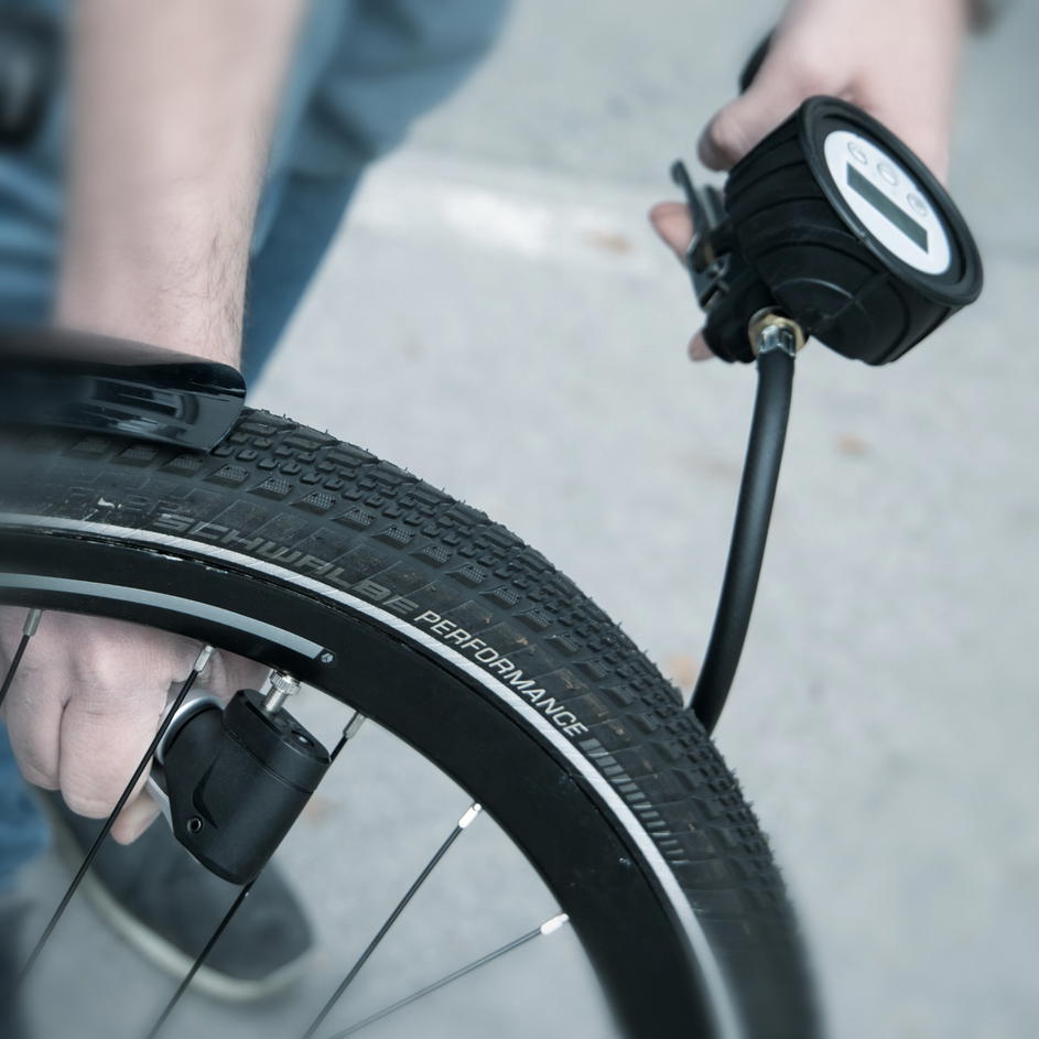 Během foukání spočívá gumová rukojeť s kovovým jádrem pohodlně a bezpečně v ruce. MV EASY WORKSHOP je vhodný pro všechny ventilky Presta, Schrader a Dunlop.