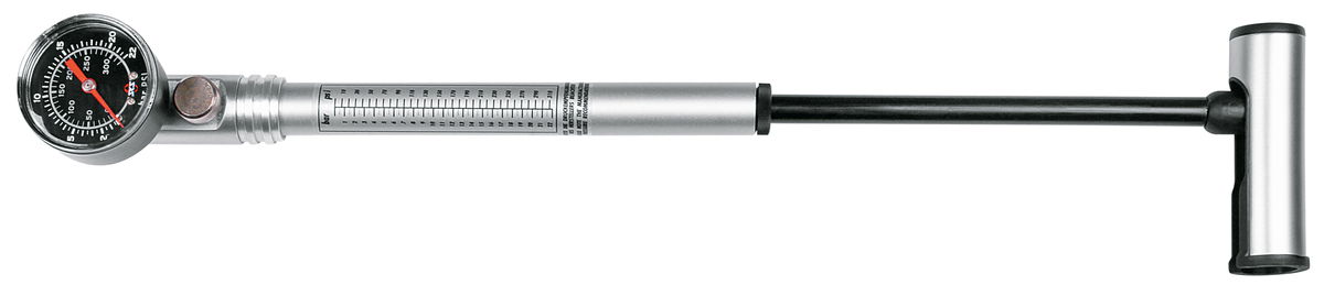 Profesionální dílenská hustilka SKS USP na odpružené vidlice z leštěného hliníku umožňuje přesné nafouknutí díky upouštěcímu ventilu. Je dlouhá 34 cm a dosahuje maximálního tlaku 22 bar (315 PSI).