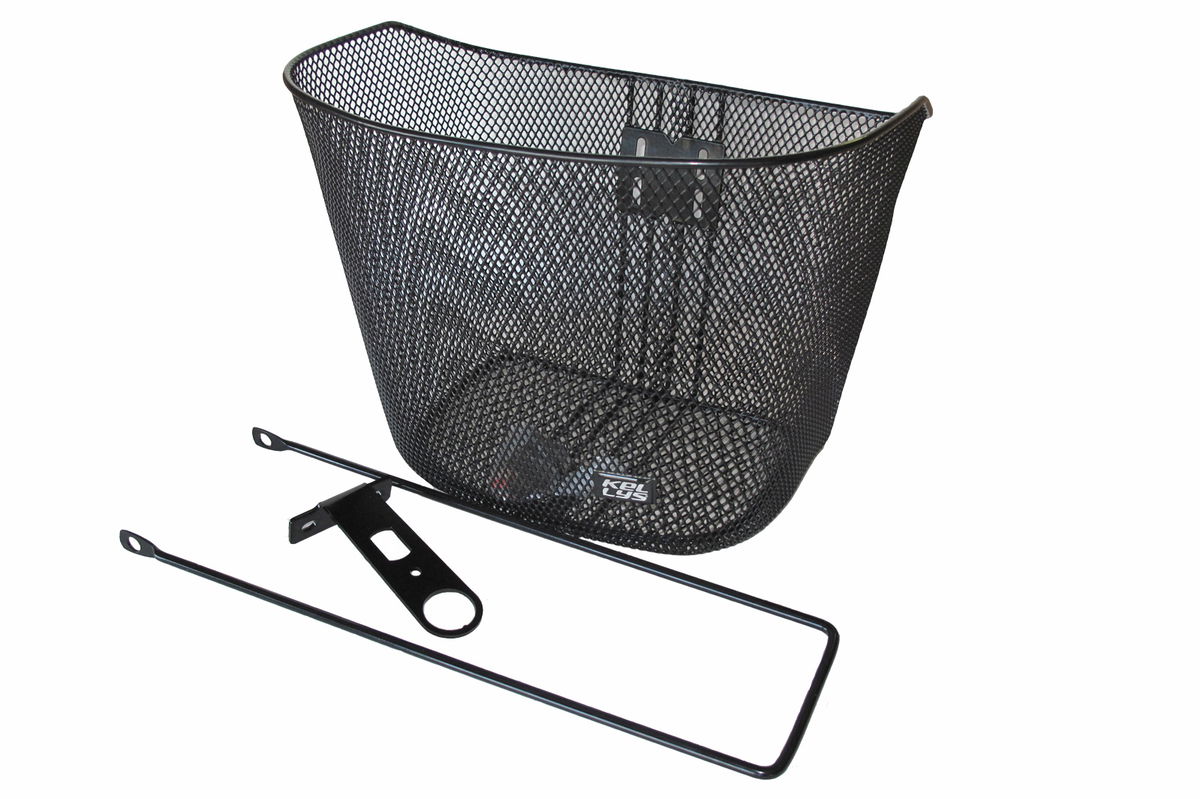 Přední ocelový košík se vzpěrou a úchytem pod maticí hlavového složení. Rozměry: 350 x 255 x 260mm (Š x D x V). Nosnost: 5 kg.