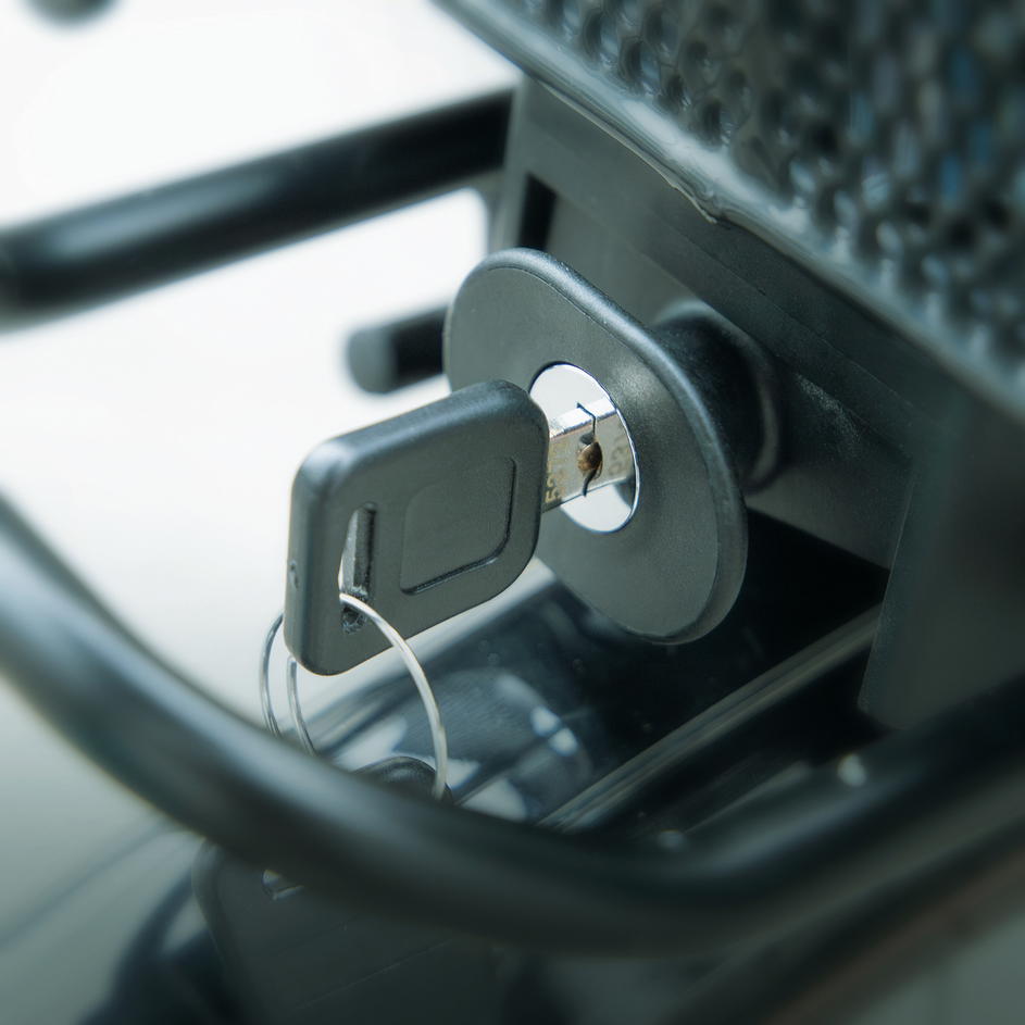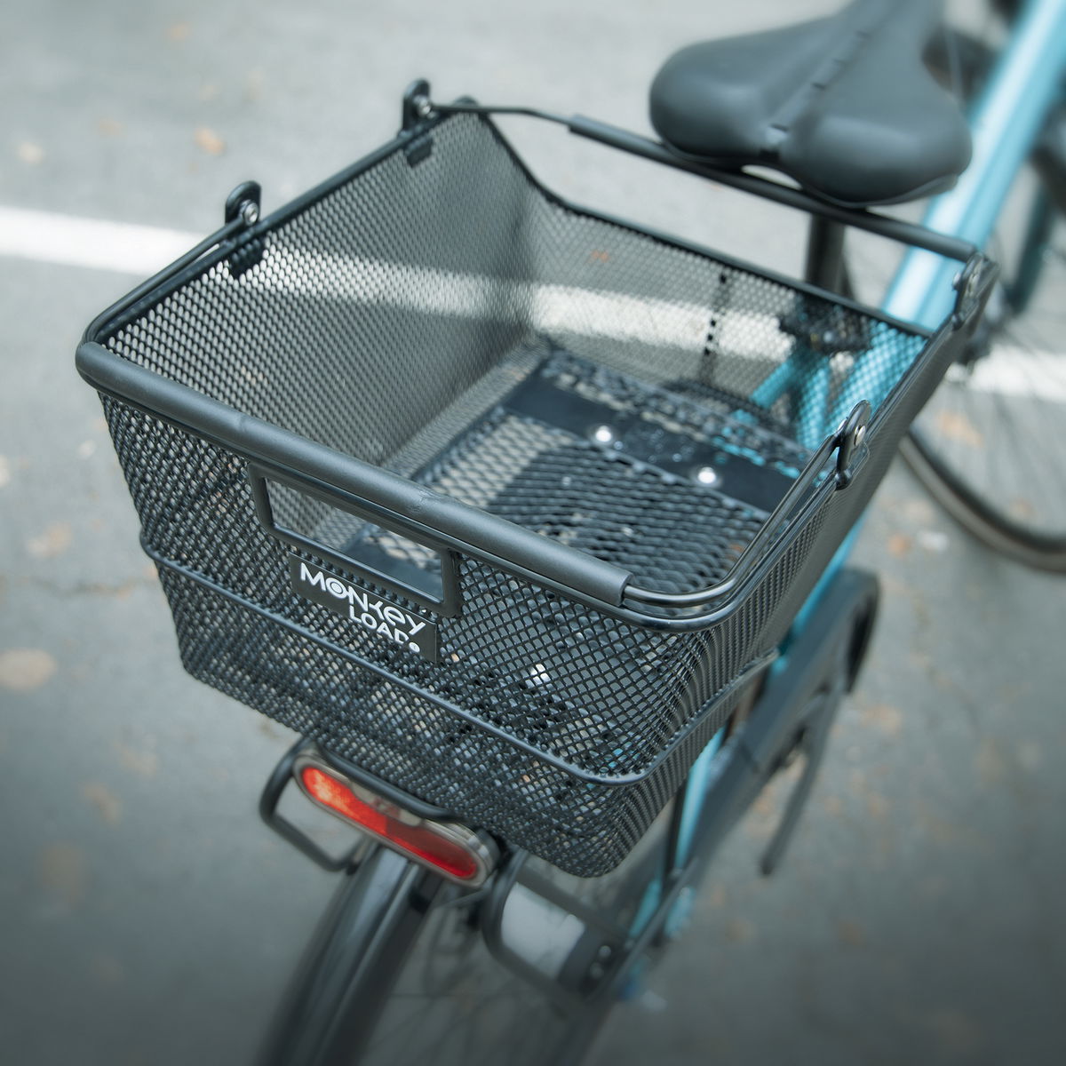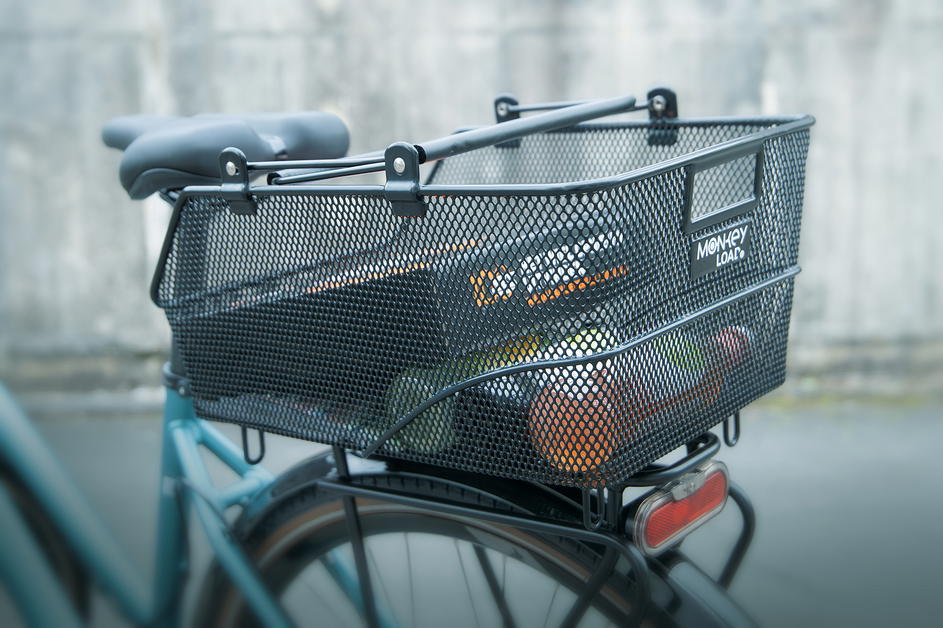 MLT BASKET je zajištěn adaptérovou deskou umístěnou na spodní straně. Během několika sekund se košík zacvakne na všechny nosiče zavazadel se systémem MonkeyLoad-T. Tlumící vrstva pod deskou zajišťuje, že koš na kolo bezpečně sedí na nosiči zavazadel a může být také zajištěn zámkem. Zajišťovací mechanismus se uvolní vytažením dopředu. Košík pak lze snadno přenášet pomocí skládacích, polstrovaných madel.