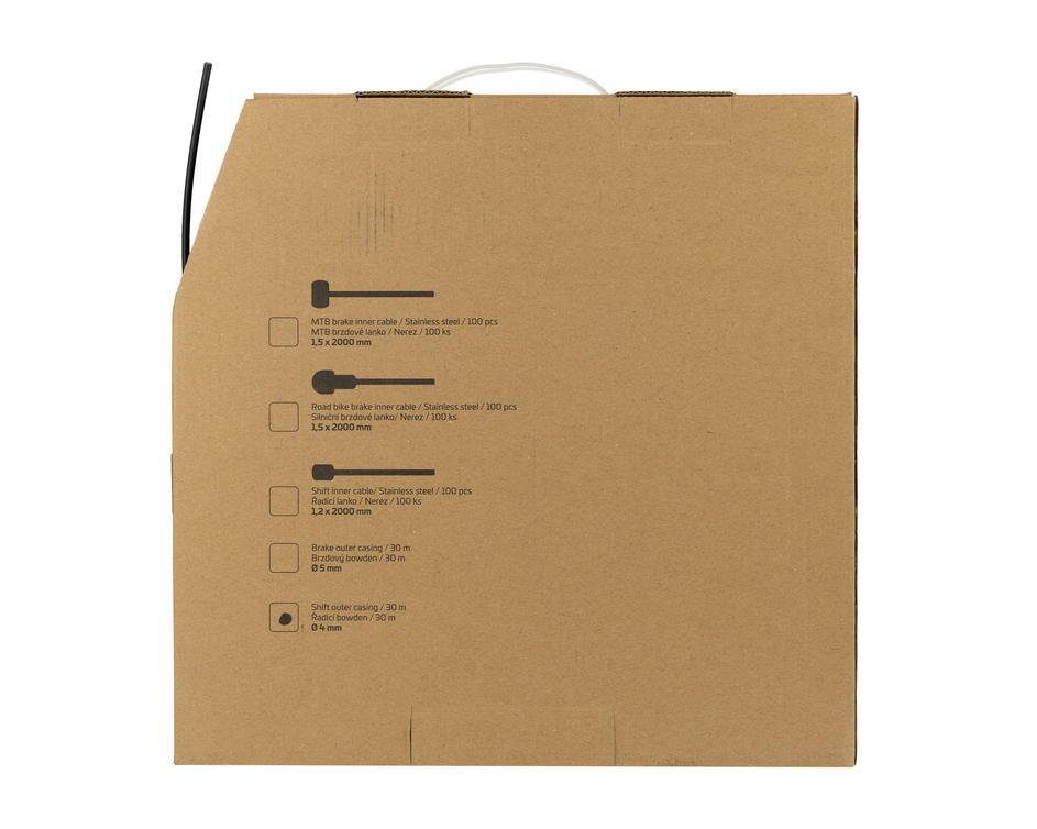 Bowden pro vedení řadícího lanka. 30 m / box Průměr 4 mm Baleno v kartonové krabici. VOC za 1 m: 11,63 Kč s DPH Doporučená MOC za 1 m: 40 Kč s DPH