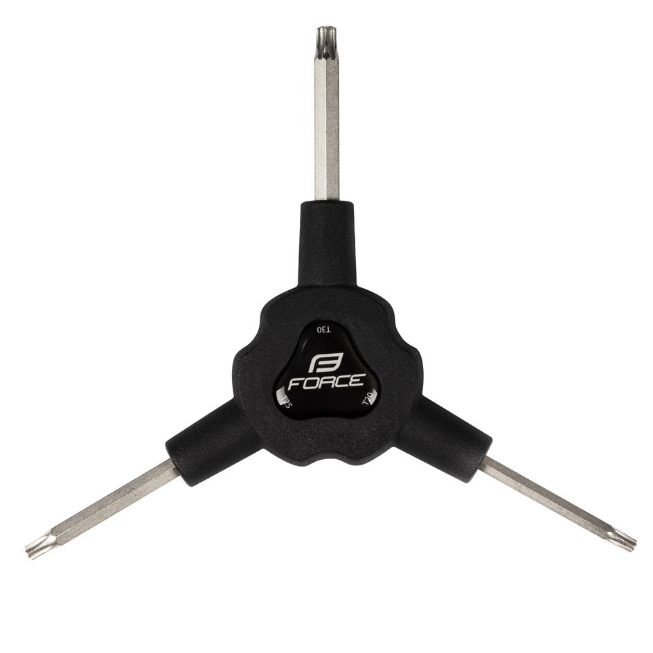 torx trojstranný klíč T20 - T25 - T30 rozpětí: 145 mm, síla rukojeti: 15 mm materiál: ocel Cr-V, plastová rukojeť, hmotnost: 78 g určeno k HOBBY použití, baleno na kartě FORCE