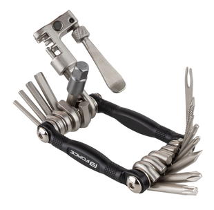 sada s 16 funkcemi obsahuje: 7 x šestihranný klíč- 2 / 2,5 / 3 / 4 / 5 / 6 mm + 8 mm adaptér nýtovač řetězu 7 -12 r. plochý šroubovák, 2 x křížový šroubovák - PH1/PH2 2 x klíč torx - T10/T25 čistící/zdrsňovací jehlu zaváděcí jehlu pro opravný knot montážní páčku délka: 85 mm, šířka: 50 mm, výška:…