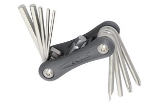 sada s 10 funkcemi obsahuje: 7 x šestihranný klíč - 2 / 2,5 / 3 / 4 / 5 / 6 mm + 8 mm adaptér plochý šroubovák, 2 x klíč torx - T25/T30 délka: 87 mm, šířka: 39 mm, výška: 20 mm materiál: ocel Cr-V + hliník, hmotnost: 147 g baleno na kartě FORCE
