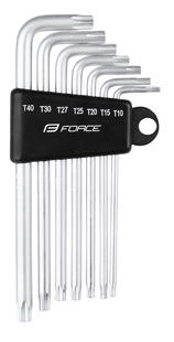 sada 7 ks TVRZENÝCH torx klíčů: T10/ T15/ T20/ T25/ T27/ T30/ T40 délka: 87 - 125mm, v plastovém držáku materiál: nástrojová ocel Cr-V hmotnost: 135 g, baleno v blistru FORCE určeno k PROFI použití
