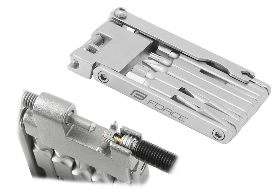 HOBBY sada s 12 funkcemi obsahuje: 6 x šestihranný klíč - 2 / 2,5 / 3 / 4 / 5 / 6 mm šroubovák křížový PH2, šroubovák plochý klíč torx T25, nýtovač řetězu 6-11r. 2 x centrklíč - 3,4 / 3,2 mm klíč na galuskový ventilek v těle nýtovače délka: 75 mm, šířka: 44 mm, výška: 12 mm materiál: ocel, hmotnost…