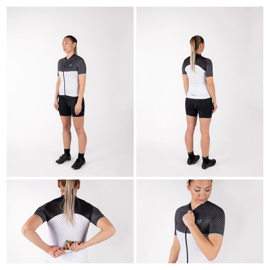 dres F POINTS LADY kr. rukáv , črn -bílo -tyrkys