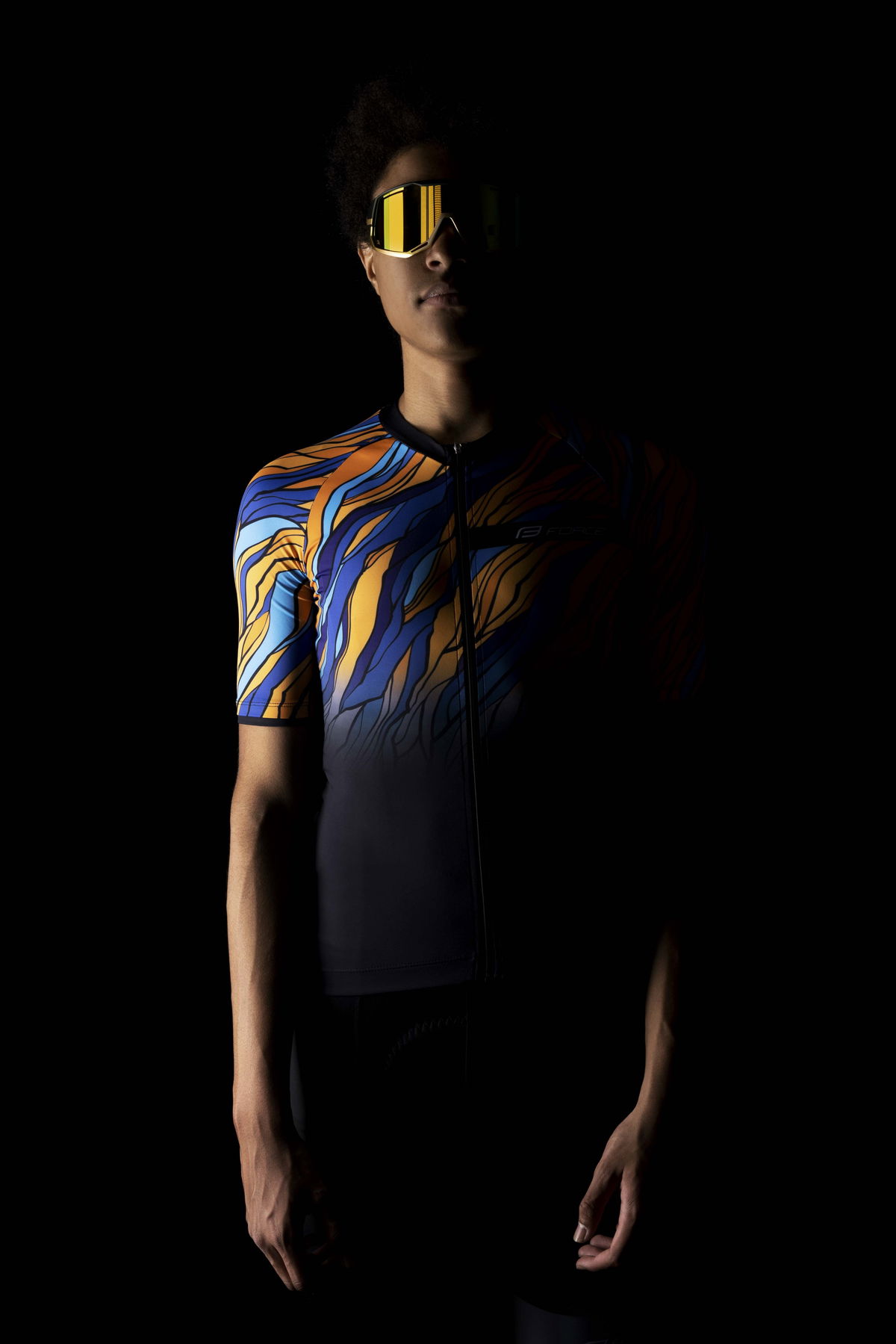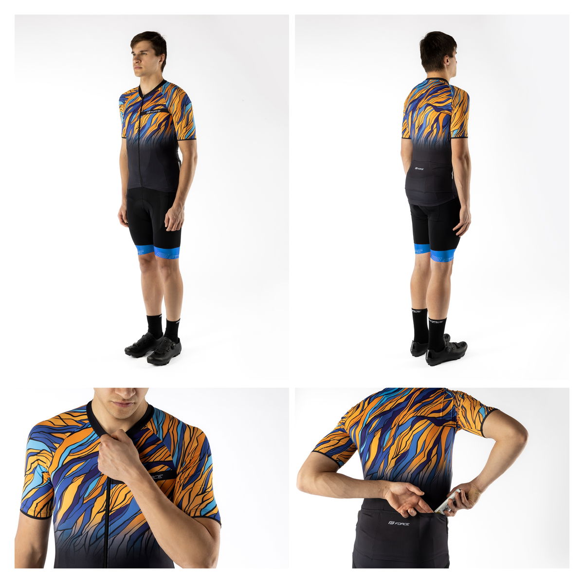 dres F LIFE UNI kr. rukáv , črn -modro -oranžový