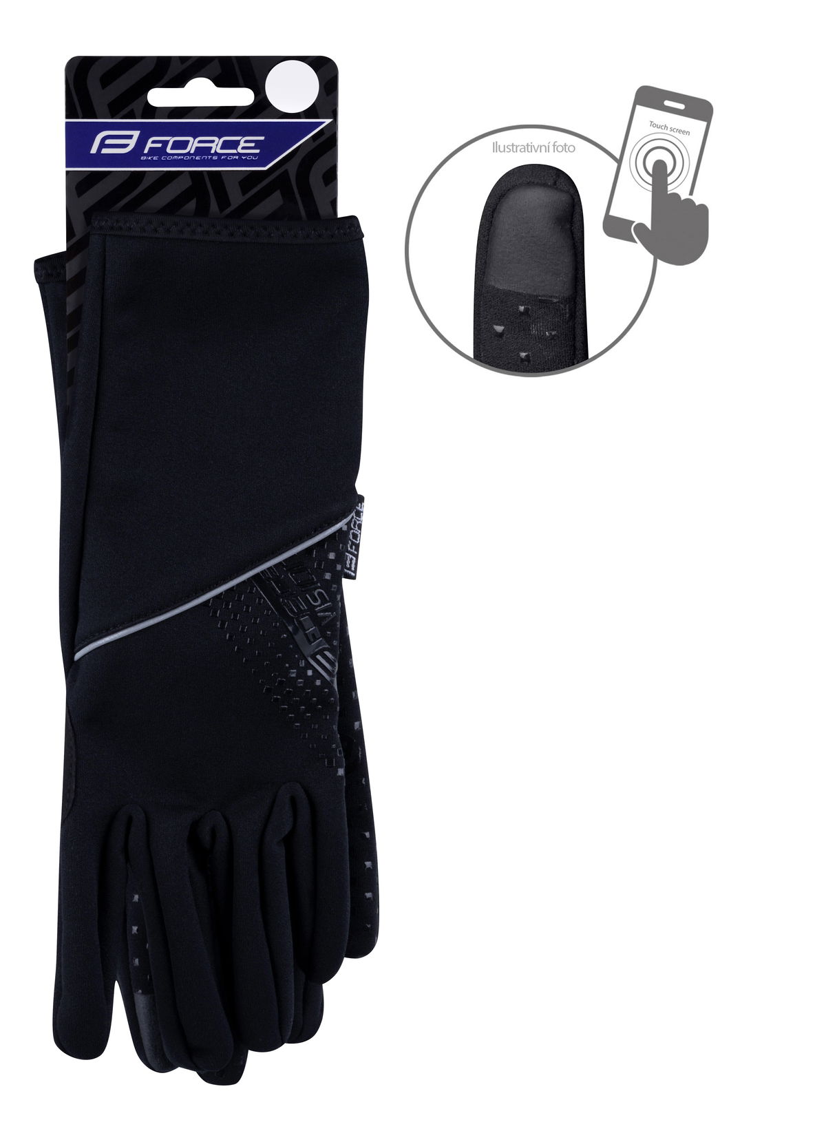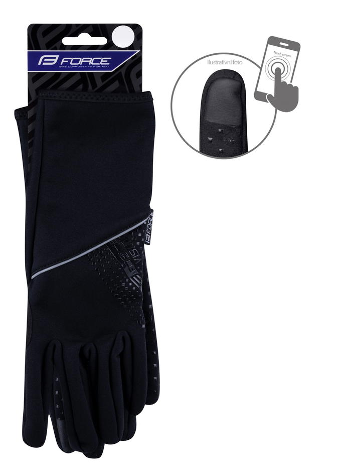 jarní/podzimní softshellové cyklo rukavice, unisex bez zapínání a bez výstelky, reflexní prvky vhodné i pro ostatní sporty větruodolné, voděodolné extra prodloužený lem zápěstí dlaň a prsty s protiskluznou úpravou možnost použití na dotykový displej určení pro teploty v rozmezí +5 °C až +10 °C…