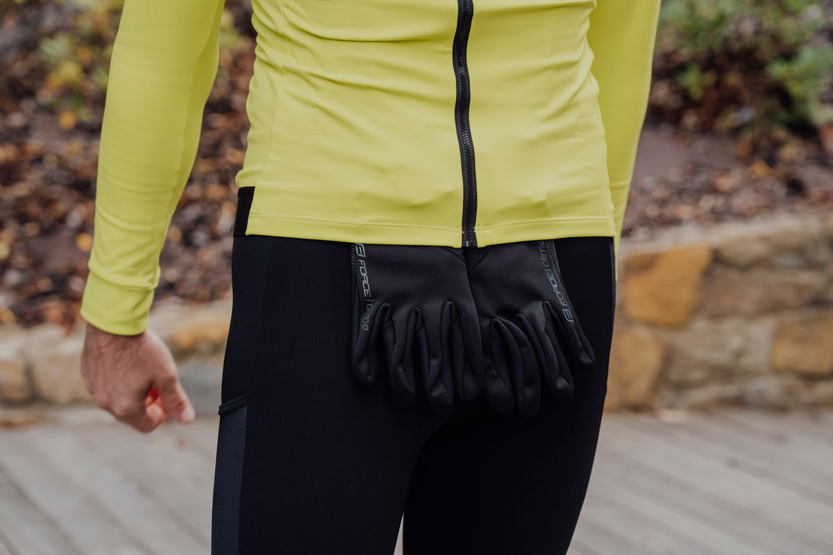 podzimní/jarní cyklistické rukavice, vhodné i pro ostatní sporty, unisex dlaň a některé prsty s protiskluznou úpravou prodloužený lem zápěstí určení pro teploty v rozmezí +5 °C až +10 °C materiál: 80% polyester, 13% nylon, 7% elastan baleno v sáčku s kartou FORCE