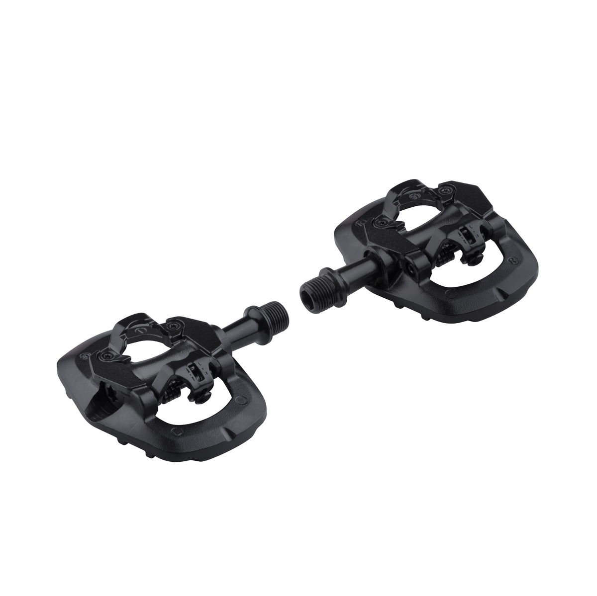 jednostranné turistické nášlapné pedály FPC systém - FORCE Pedal Click kompatibilní se zarážkami SHIMANO SPD SM-SH51/ 56 kuličková ložiska materiál: hliníkové tělo pedálu, osa Cr-Mo velikost platformy: 102x66x30 mm nastavitelné předpětí pružiny, železná klec včetně černých zarážek (náhradní zarážky…