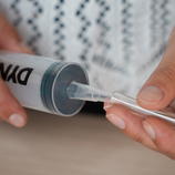 - Protřepej tmel a naplň injektor (při plnění drž hadičku v ohybu, aby se nepřidalo příliš).