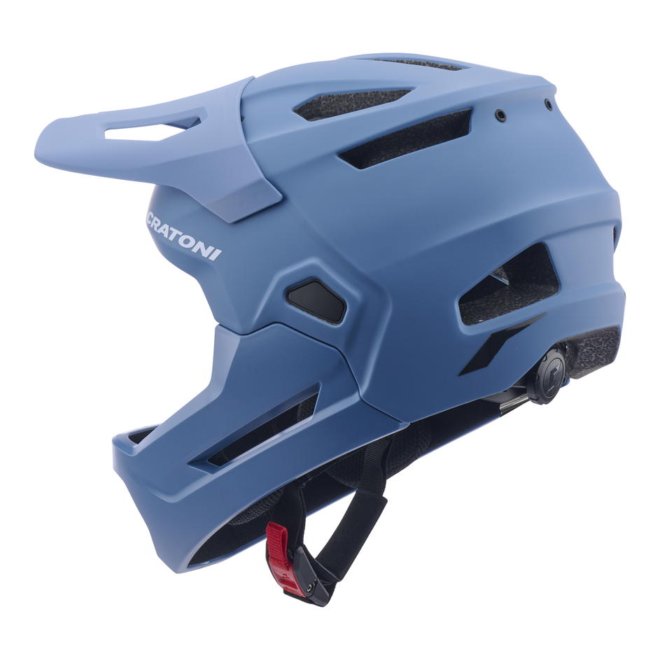 CRATONI MadCat je všestranná dětská a juniorská full-face cyklistická helma navržená pro malé jezdce, kteří milují dobrodružství v terénu. Robustní konstrukce s odnímatelným chráničem brady umožňuje používat helmu jak v plné integrální variantě, tak i jako klasickou otevřenou helmu. Poskytuje vysokou míru ochrany a bezpečí při jízdě na trailu, pumptracku nebo v bikeparku.