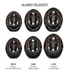 Přilba ALVARO je k dispozici ve třech velikostech: XS-S (53-56 cm), S-M (55-59 cm) a L-XL (59-63 cm), což zaručuje perfektní fit pro širokou škálu velikostí hlavy.