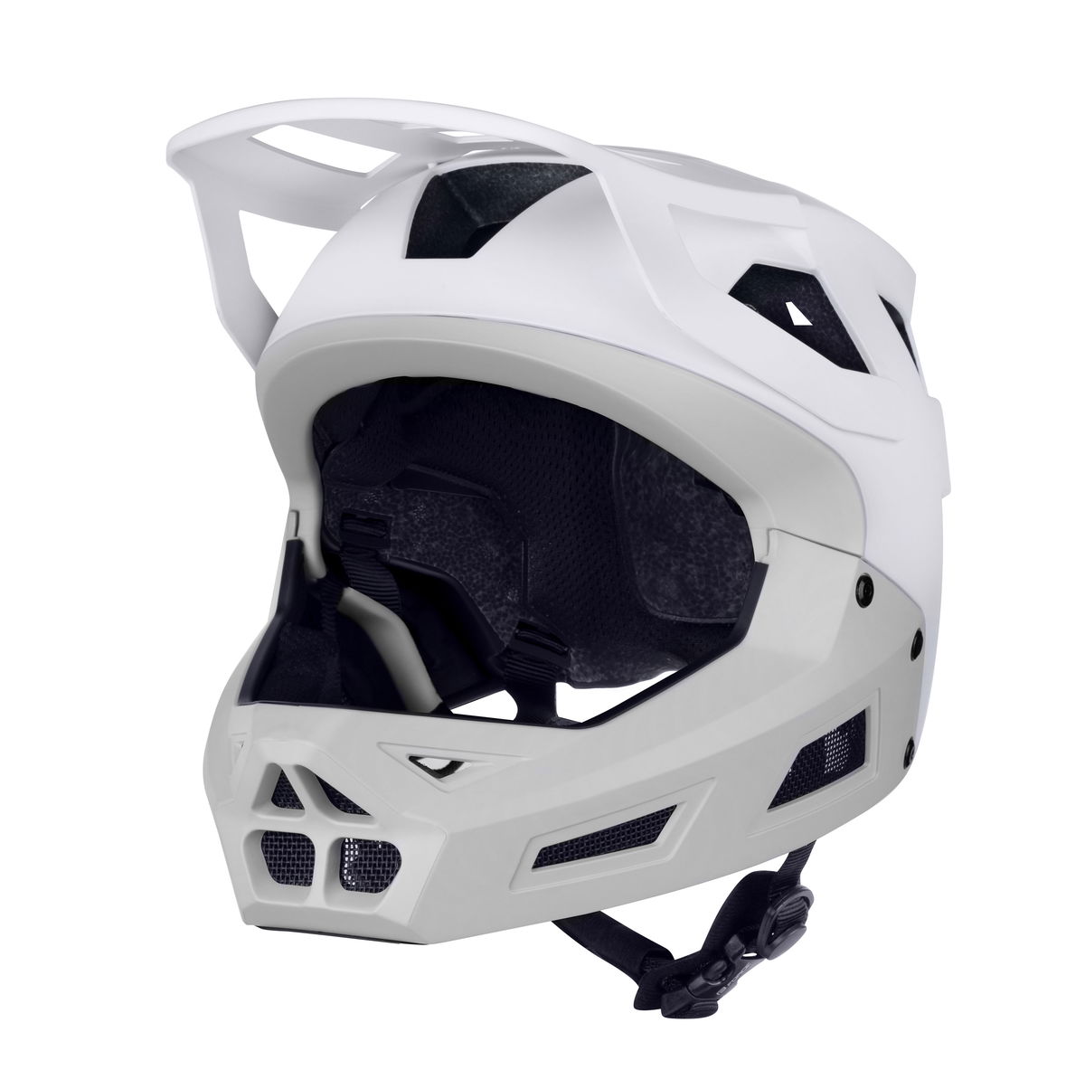 Fixní konstrukce zvyšuje celkovou pevnost přilby a poskytuje stabilní ochranu spodní části obličeje.