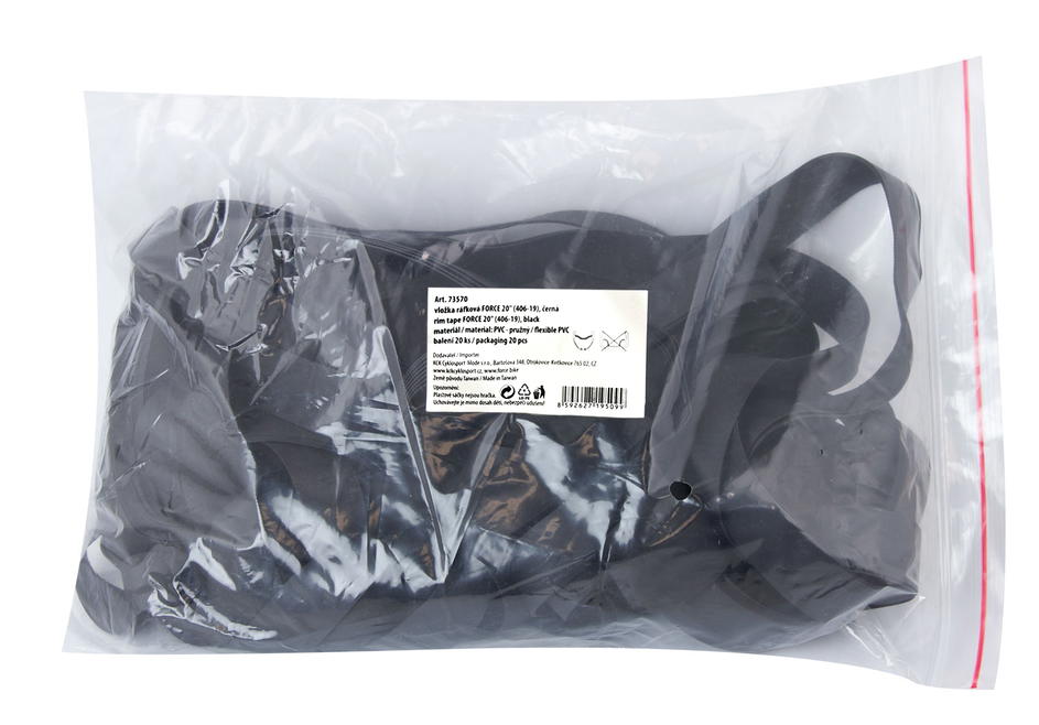 vložka do ráfku FORCE pro kola 20" délka 1150 mm šířka: 19 mm materiál: PVC - pružný baleno v sáčku a prodej po 20 ks uvedená cena je za 1 ks