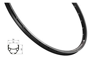 26", dvojstěnný ráfek, jednoduchý nýt výška ráfku: 20 mm otvor pro ventilek: 8,5 mm ERD (efektivní průměr ráfku): 534 mm pouze pro kotoučové brzdy materiál: slitina hliníku hmotnost: 500 g