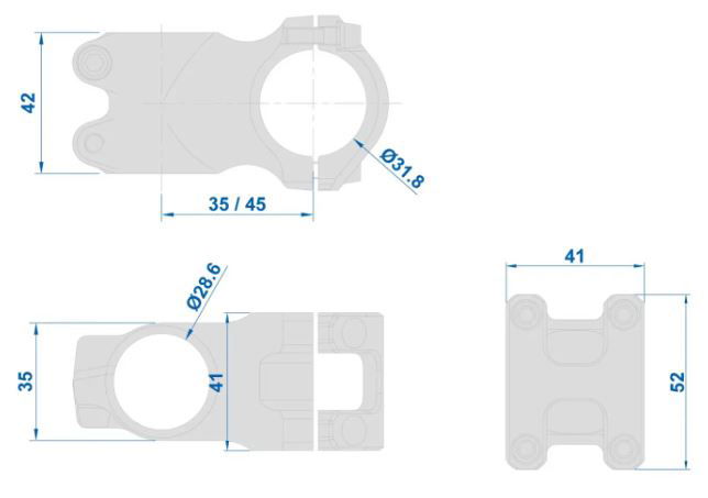 Je k dispozici ve čtyřech délkách od 35 do 65 mm a je vyroben ze slitiny 3D Net Forged 6061-T6.