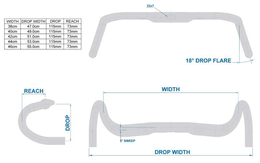 Ritchey Butano Comp jsou řídítka s vnitřním vedením, s dropem 115 mm, reach 73 mm, drop flare 18°, backsweep 5°.