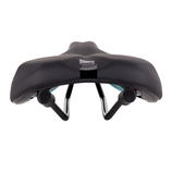 Komfortní širší sedlo ploššího tvaru vhodné například na cykloturistiku a městská kola. Disponuje vysokou a měkkou vrstvou polstrování z paměťové pěny na nylonovo-pryžové konstrukci s podélným vybráním pro snížení tlaku v citlivých místech pro zlepšení jízdního komfortu. bez podsedlového zámku…