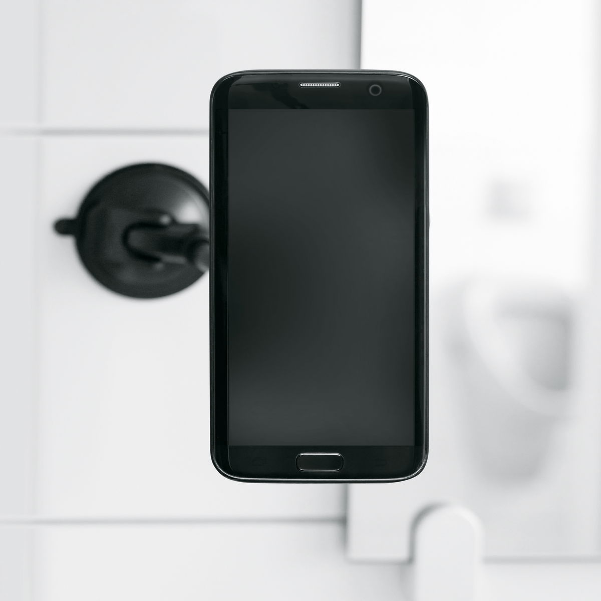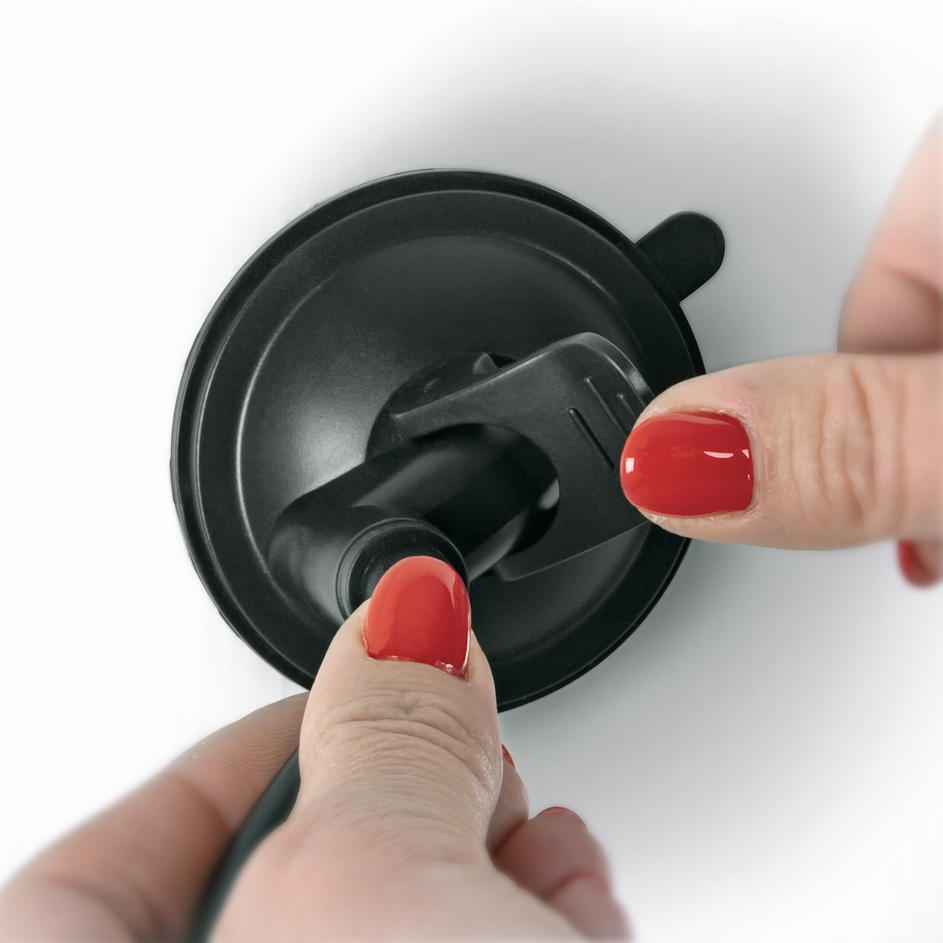 Pevná přísavka pro bezpečné uchycení a silikonová přísavka s podtlakovým pákovým mechanismem zajišťuje spolehlivé uchycení na všech hladkých površích, jako jsou dlaždice, čelní sklo nebo sklo. Doporučujeme povrch předem očistit.
