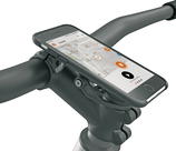 Vysoce kvalitní držák smartphonu je namontován pod stávající krytkou ježka na představci. Díky bajonetovému držáku lze mobilní telefon namontovat rychle a snadno jediným pootočením - v obou směrech. To znamená, že kokpit zůstává čistý a řídítka zůstávají volná. Držák mobilního telefonu s uchycením na představec také poskytuje ideální řešení pro použití systému COMPIT pro MTB kola a elektrokola s 35 mm řídítky. Má nastavitelný úhel.