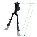 stojan FORCE pod rám dvounohý s protikusem stavitelný: 24" - 29" kola nosnost 30 kg maximální délka: 36 cm minimální délka: 30 cm s plastovou koncovkou materiál: ocel hmotnost: 750 g baleno v sáčku